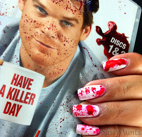 2. I'll say it again - I LOVE THIS!! First of all Dexter is my homeboy and you executed (see that pun there???) this beautifully!!! I don't even mind that you didn't do flowers!! And I thought you broke a nail - where are your nubbins!!