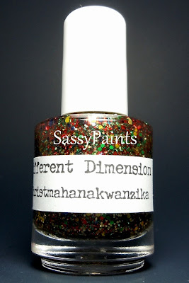 Christmahanakwanzika: A glitter bomb with several different size hexes in various colors including red, green, yellow, gold, blue and black.