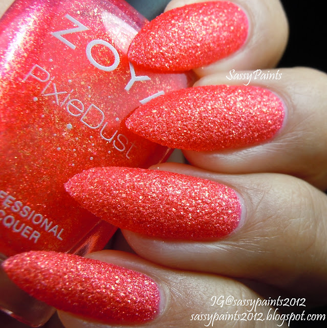 ..."can be best described as a coral metal sparkle in the exclusive Zoya PixieDust Textured, Matte, Foil Twinkle formula."