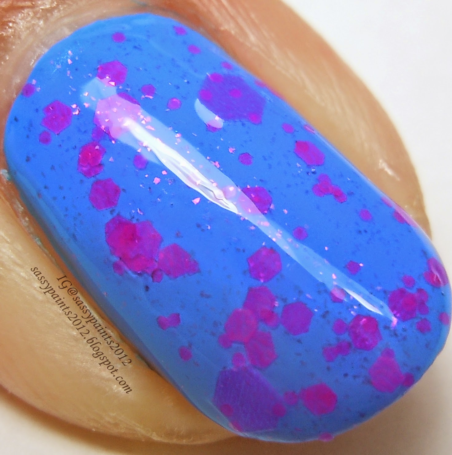 And last, but not least the purple! I wasn't sure I'd like this color but after applying it I realized I love it! It would be great paired with any glitter topper but I went with Different Dimension Think of All the Fellas I Haven't Kissed.